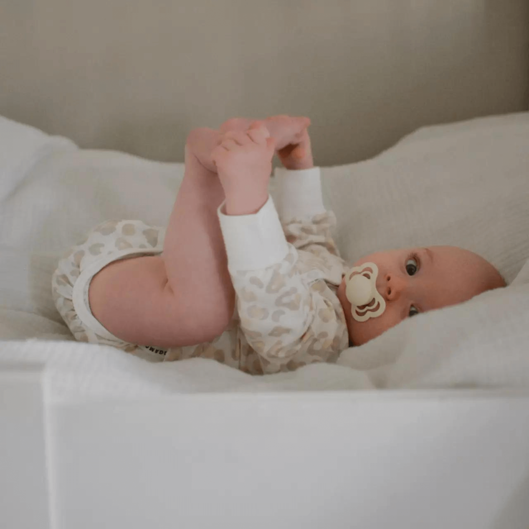 Bambusové body detské s dlhým rukávom béžovej Soft beige leo Geggamoja