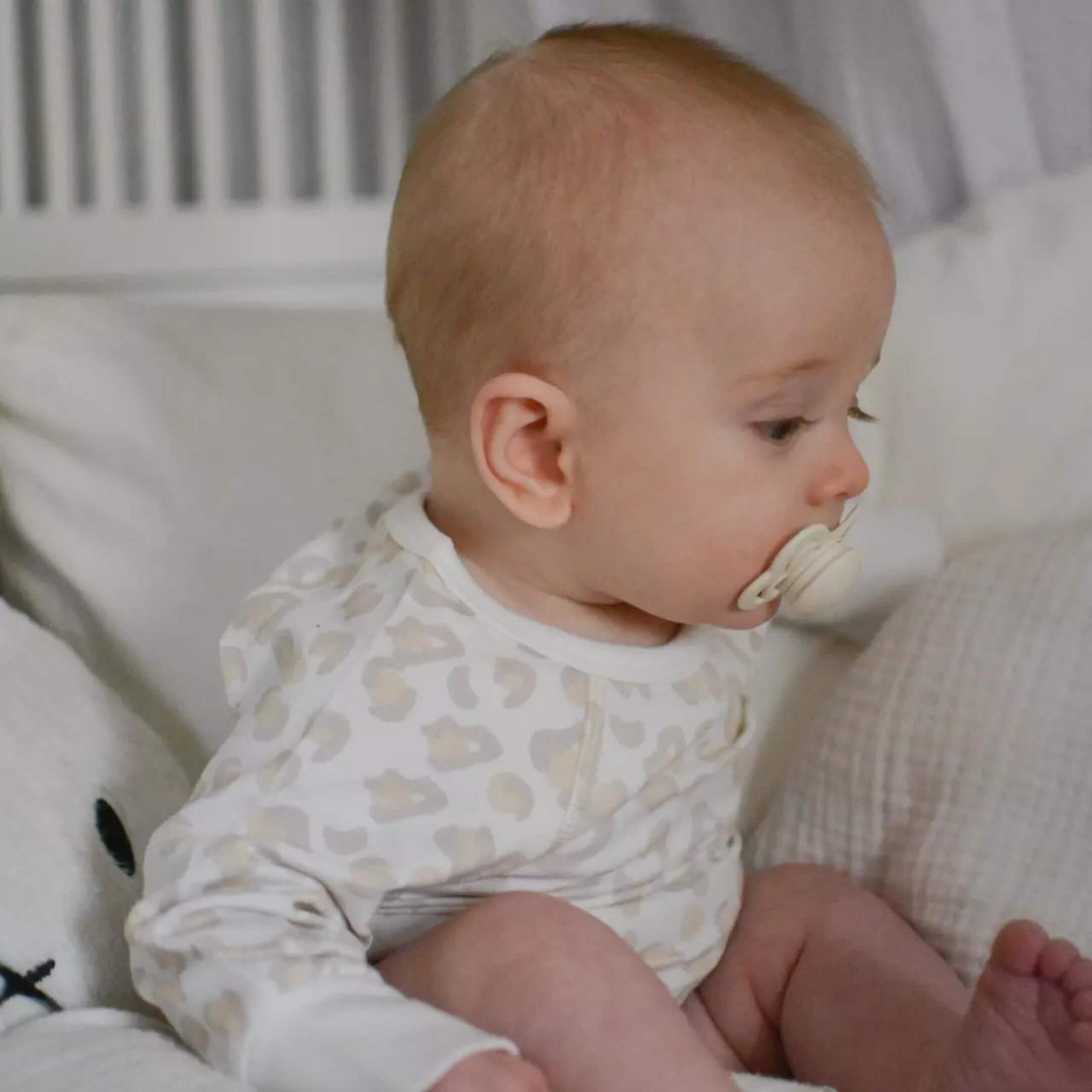 Bambusové zavinovacie body detské s dlhým rukávom béžovej Soft beige leo Geggamoja