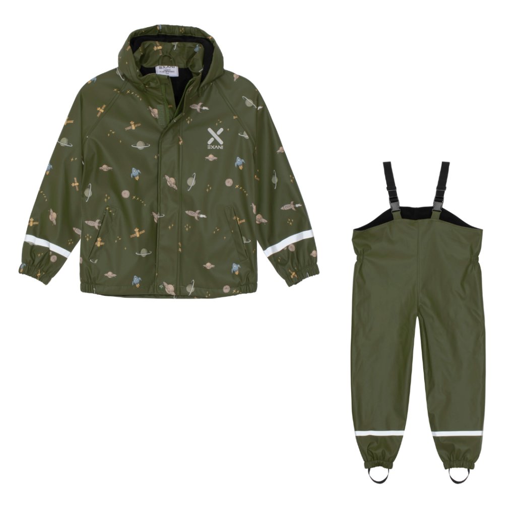 Detská nepremokavá zateplená súprava do vetra a dažďa zelená GREEN SPACE EXANI