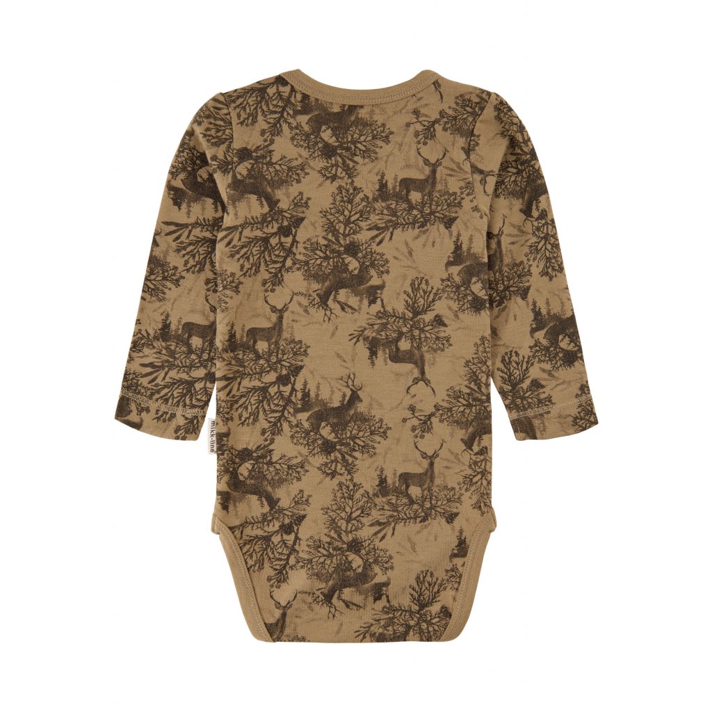 Detské body s dlhým rukávom z merino vlny a bambusu Kelp vzor Mikk-Line