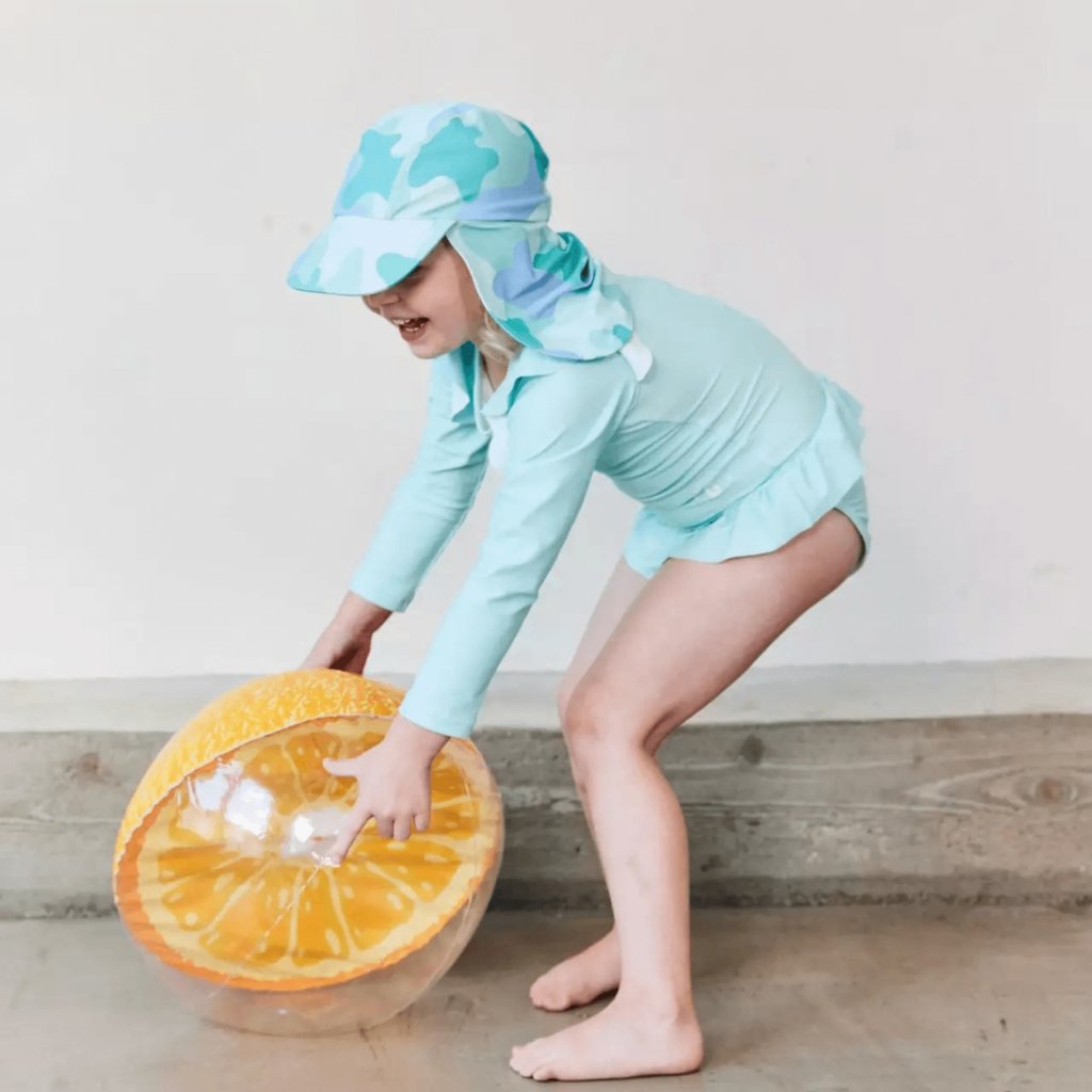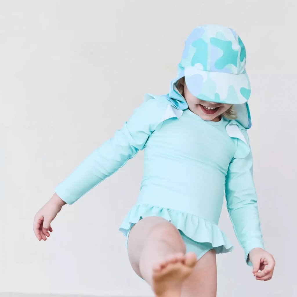 Detský UV klobúk so slnečnou clonou Cammo mint Geggamoja