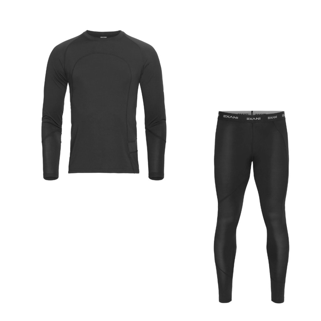 Pánska funkčná bielizeň set nohavice a tričko z polyesteru čierna farba EXANI