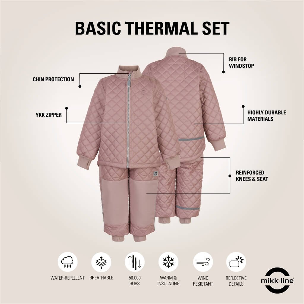 Termo súprava Mikk-line sa skladá z bundy a nohavíc z praktického materiálu s vodoodolnou úpravou bez fluóru (BIONIC-FINISH® ECO). Ide o jednoduché, mäkké a funkčné outdoorové oblečenie pre deti, ktoré ich udrží v teple a umožní im užívať si vonkajšie dobrodružstvá v prechodnom období s chladným a premenlivým počasím.