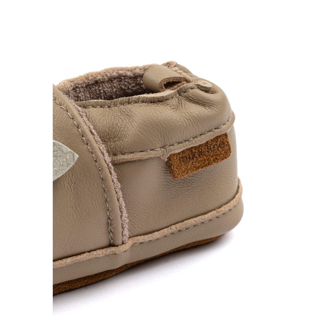 Vďaka širokému strihu majú detské nohy dostatok priestoru na prirodzený pohyb, zatiaľ čo priliehavý strih okolo členkov zaručuje, že papuče dokonale sedia a nešmýkajú sa. Protišmyková podrážka z hovädzieho semišu zaručuje bezpečnosť aj na klzkých podlahách, čo oceníte pri každom kroku vášho malého prieskumníka.