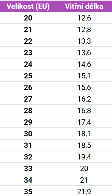 Tabuľka veľkostí En Fant Zateplené gumáky