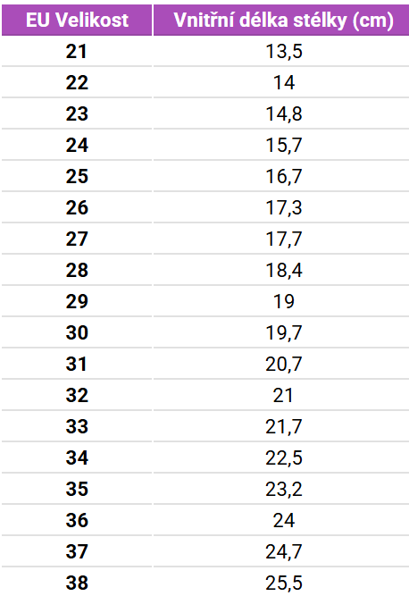 Tabuľka veľkostí Geggamoja Gumáky