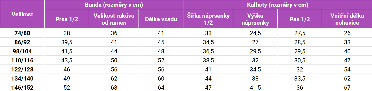 Tabuľka veľkostí Geggamoja nepremokavá súprava