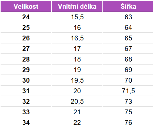 Tabuľka veľkostí Geggamoja topánky