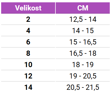 Pre zistenie veľkosti rukavíc pre deti zmerajte obvod dominantnej ruky dieťaťa okolo mierne klenutých kĺbov v centimetroch. Zmeraný obvod ruky udáva veľkosť rukavice.