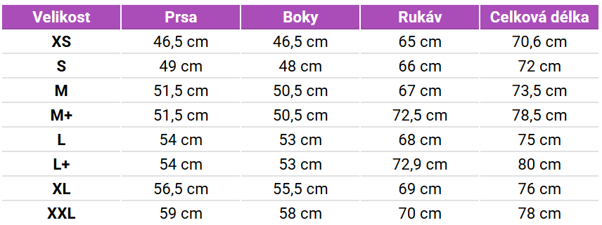 Tabuľka veľkostí Merino365 Pánske tričko dlhé