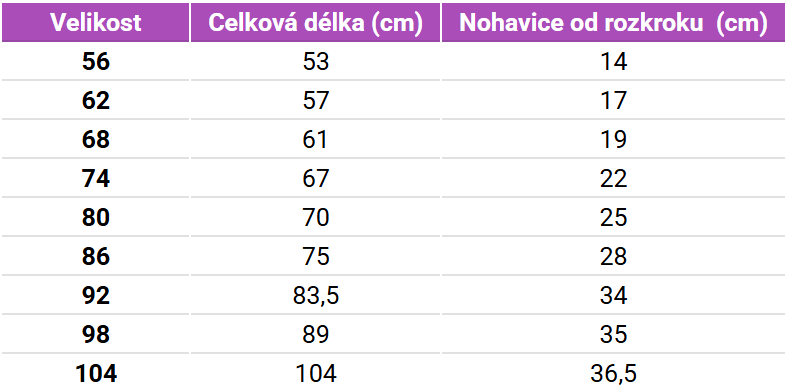 Tabuľka veľkostí Mikk-line Overal