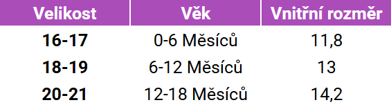 Tabuľka veľkostí POM POM capačky zateplené