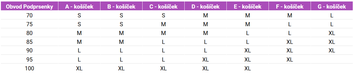 Tabuľka veľkostí MILKER tielko Betty