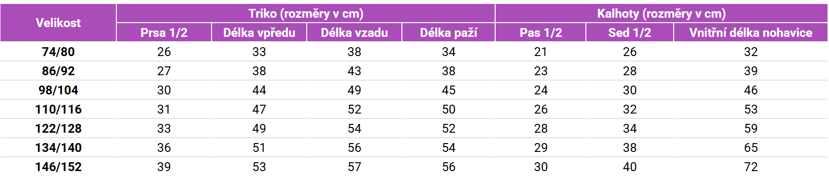 Tabuľka veľkostí Geggamoja dvojdielne pyžamá